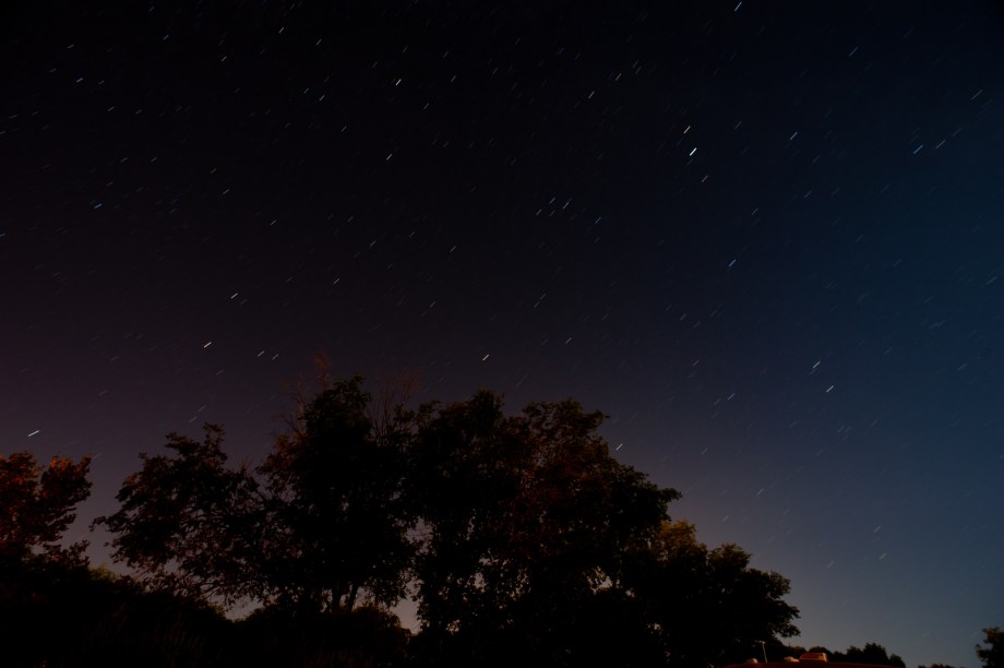 While in Colorado earlier this month, I tried to capture a few star trail photos. I understand the concept pretty well; basically long exposure shots of the night sky, but without having done them before, they aren’t as easy as they look. The key to getting some interesting shots is to have a good foreground to anchor it. Otherwise, it’s just some arcs of light. I think even a silhouette of something would work. Here’s a few from a campsite just outside of Fruita, CO. These trees were illuminated by a nearby tungsten light from the campgrounds. Luckily, it was a relatively windless night, keeping the leaves still enough to get some detail. Anyway, I’m pleased with the results. I’ll be trying it again sometime soon, but now that I’m back in Michigan, the mosquitoes are not really convincing me that I want to spend time outside at night… But perhaps, when it gets a little colder, I might try to make it out for some photos.