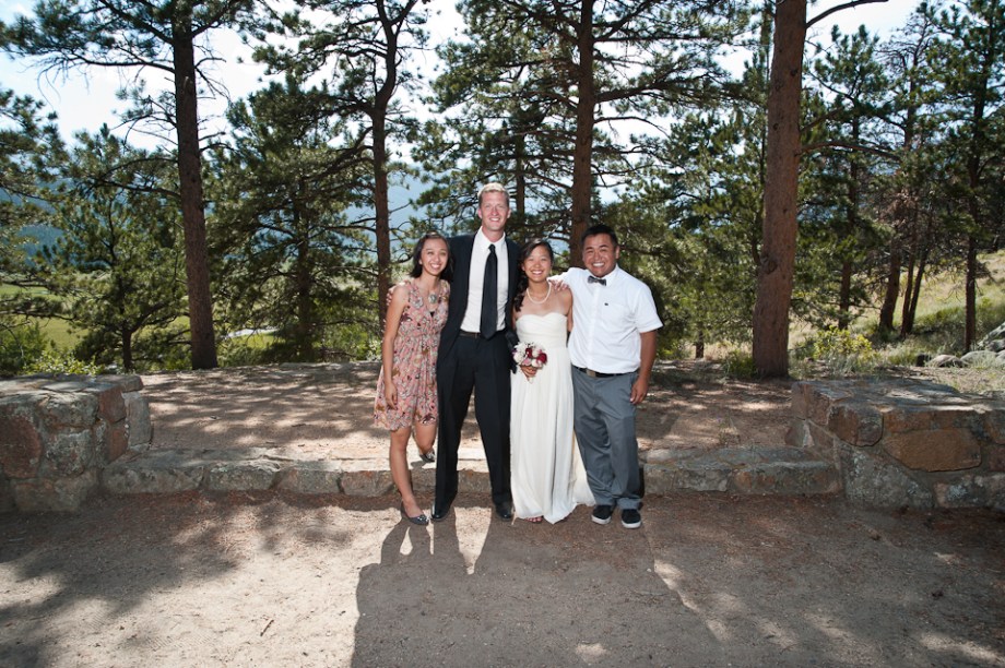 A few weeks back, I attended the wedding of some very close friends, Rob and Julie. They had their wedding at the amphitheater at Morraine Park in the Rocky Mountains National Park. Since it was a small wedding with just family and close friends, they asked me to do some photos for them as they were looking for a pretty low-cost, low-maintenance wedding. Wedding photography isn’t my thing, but I rarely turn down a friend when in need (and when the favor is something that interests me anyway). Having only done a few weddings, I’m always learning, and I’m always learning how difficult wedding photography is, and how much respect great wedding photographers deserve. In any case, here are a few of my photos from the wedding.