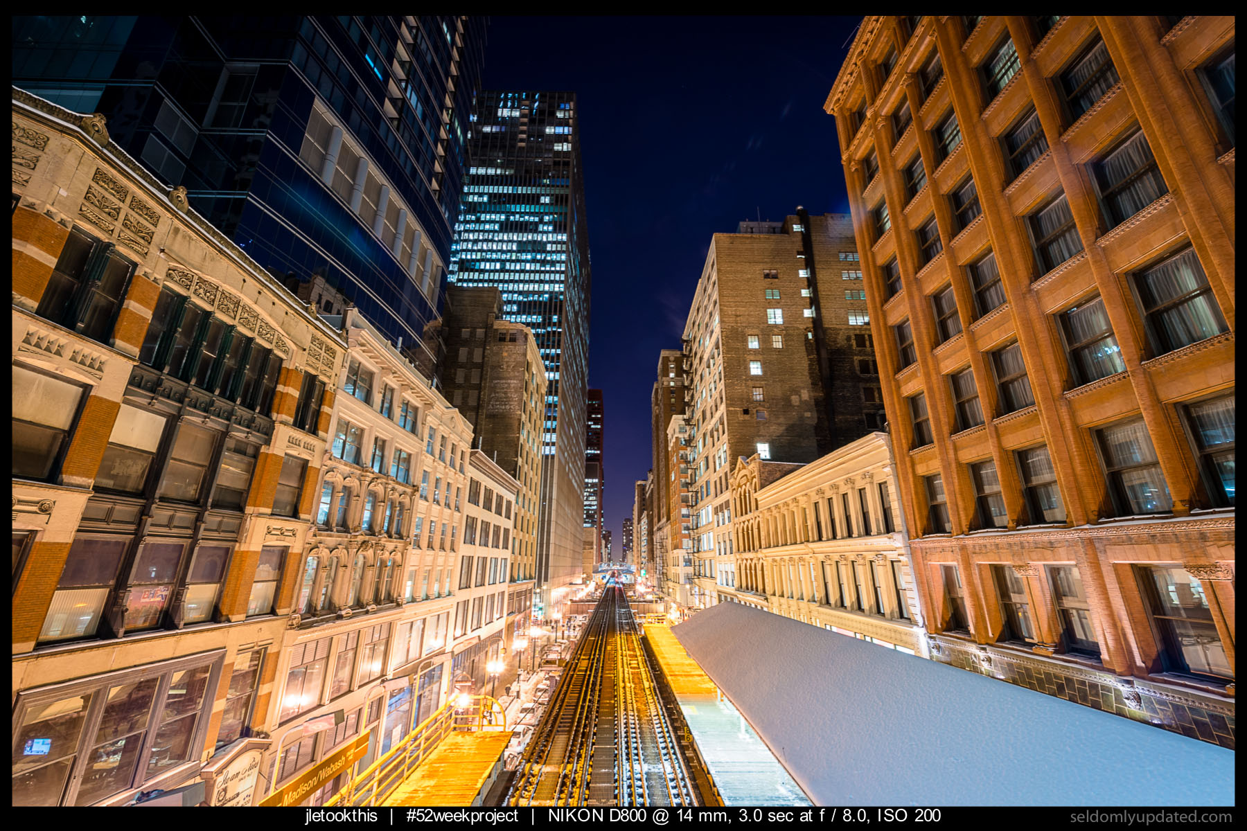 I took the hike over after work, and set up my tripod and camera precariously on a ledge of the roof to get this shot. The roof was un-shoveled from the heavy snowfall the night before, and luckily there were no cars or people around to have to explain myself to. It was a little windy, and standing in foot high snow didn’t make it feel any steadier, but I think the shot turned out pretty good. I have a couple ideas for how to make this shot better, so I’ll be back here to take a few different angles under different conditions (possibly after a storm or during a summer sunset)